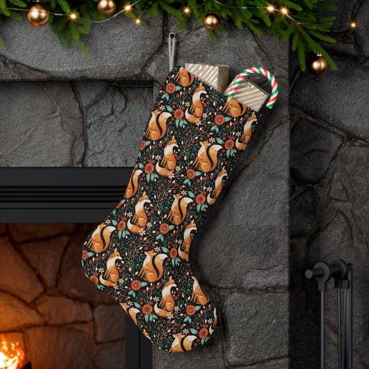 Enchanted Woodland Fox, Dark Cottagecore Watercolor Style, Black Yule Christmas Stocking
