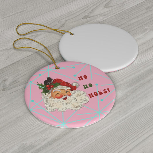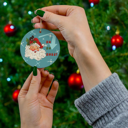 Funny Vintage Santa "Ho Ho Hoes!" Christmas Ceramic Ornament