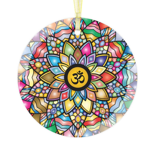 Om, Lotus Mandala Glass Ornament, Diwali Home Decor, Yoga Christmas Ornament