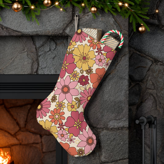 Retro Boho Mid Century Floral Yellow and Pink Christmas Stocking