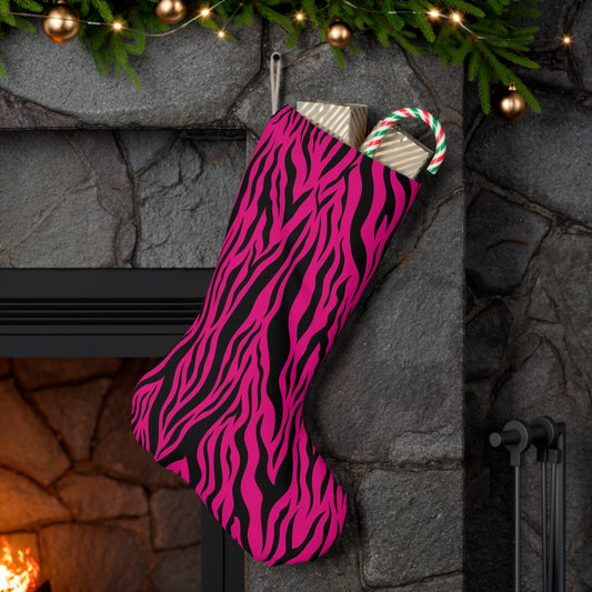 Pink Tiger Stripe Animal Print Christmas Stocking