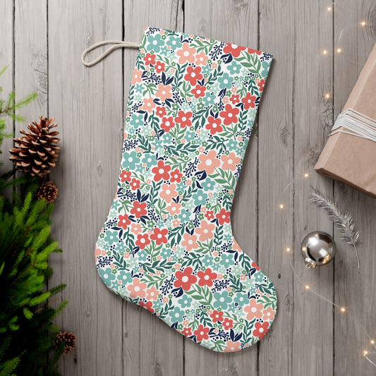 Retro Minimalist Scandi Flowers Cottagecore MCM Vintage Inspired Coral & Teal Christmas Stocking