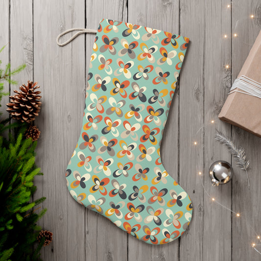 Retro Scandi Mid Century Inspired Danish Flowers Mint Green Christmas Stocking