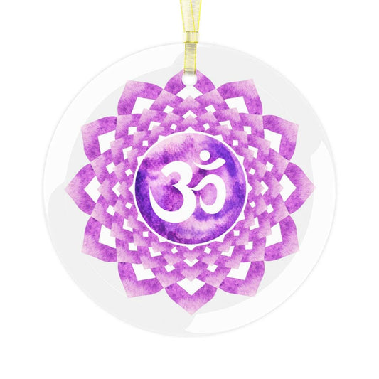 Sahasrara, Crown or Seventh Chakra Om Glass Ornament, Yoga Om Christmas Ornament