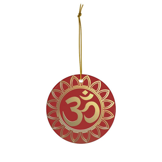 Om Red Ceramic Ornament for Diwali Decor & Christmas Tree Ornament