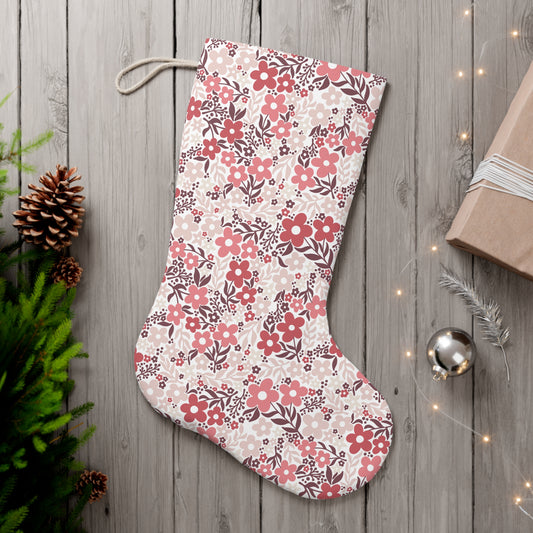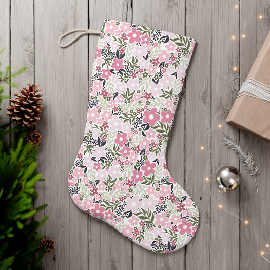 Retro Minimalist Scandi Flowers Cottagecore MCM Vintage Inspired Pink Christmas Stocking