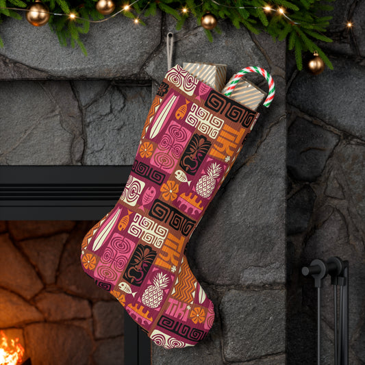 Retro Tiki Christmas 60s Vibes Mid Century Modern Brown, Orange, Pink Holiday Stocking