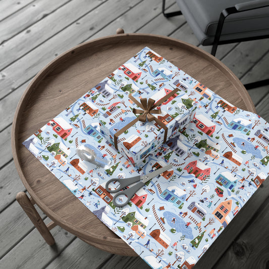 Small Town Christmas Village, Retro Vintage Winter Scene, Multicolor Eco-Friendly Gift Wrap