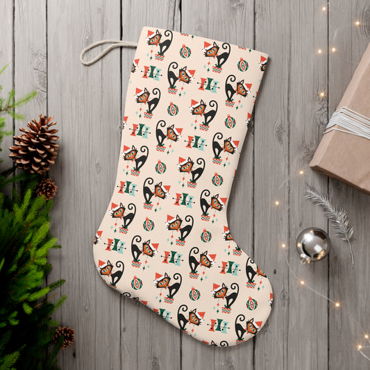 Retro 50s Christmas Atomic Cat Mid Century Modern Cream Holiday Stocking
