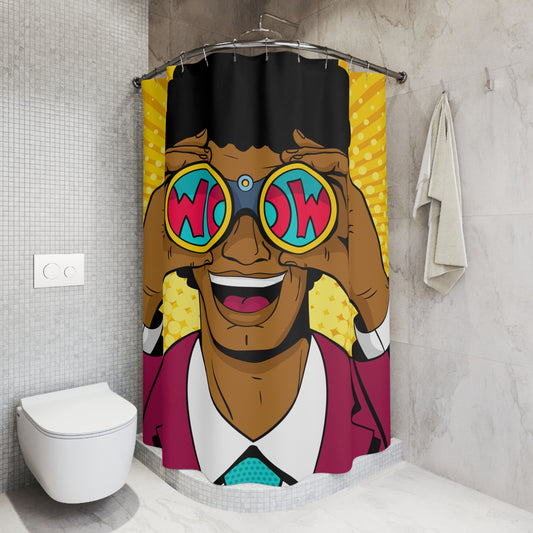 "Wow" Binoculars Man Comic Pop Art Funny Shower Curtain