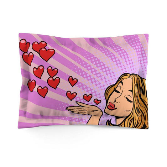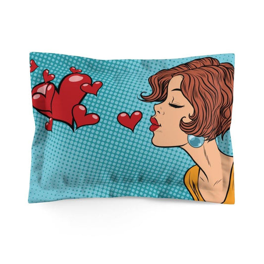 "Woman Blowing Hearts" Comic Pop Art Pillow Sham