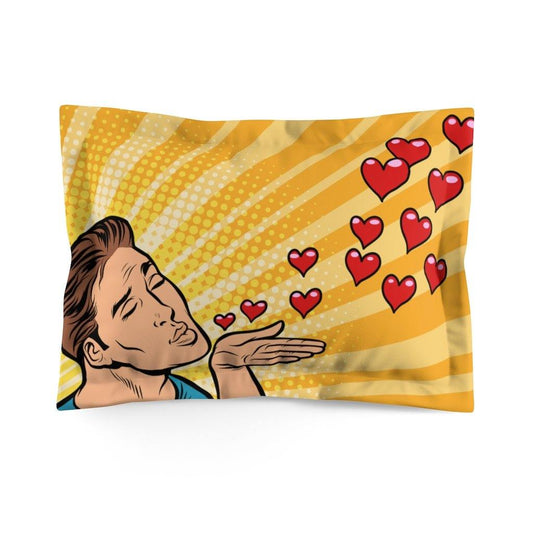 "Man Blowing Hearts" Comic Pop Art Pillow Sham