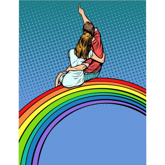"Couple Sitting on Rainbow" Comic Pop Art Pillow Sham