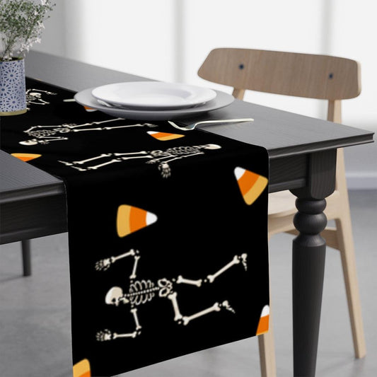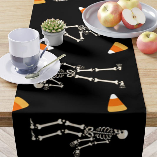 Dancing Skeletons & Candy Corn Halloween Black Table Runner
