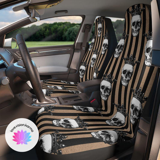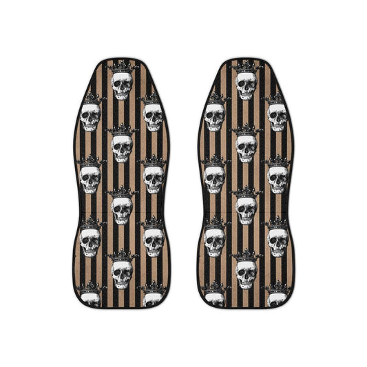 Crowned White Skulls Glam Goth Brown & White Car Seat Covers