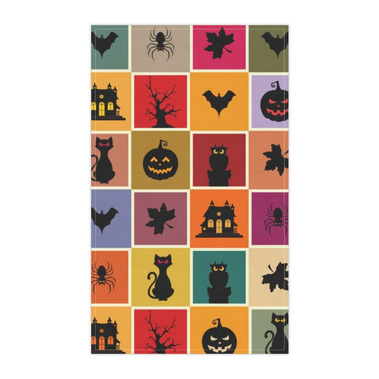 Halloween Black Cat, Bats & Ghost Orange Cotton Twill Kitchen Towel
