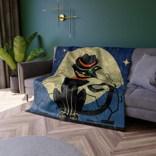 Atomic Cat Vintage Style MCM Halloween Crushed Velvet Blanket