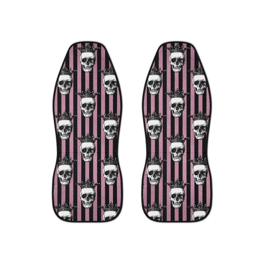 Skulls with Crowns Glam Goth Pink & Black Striped Car Seat Covers