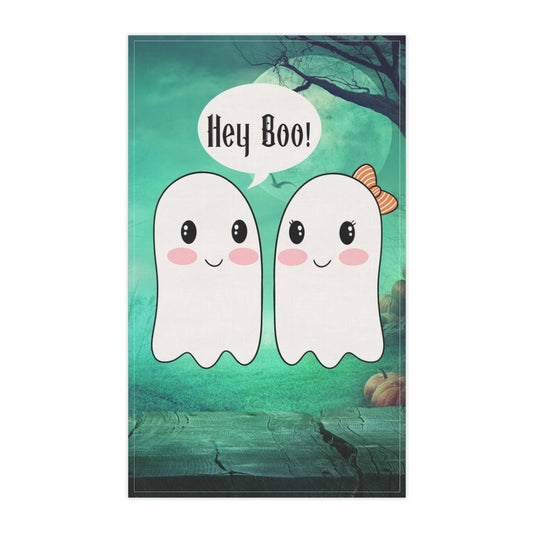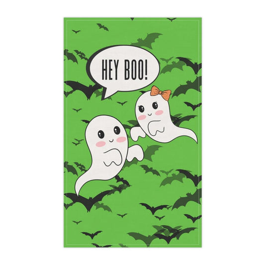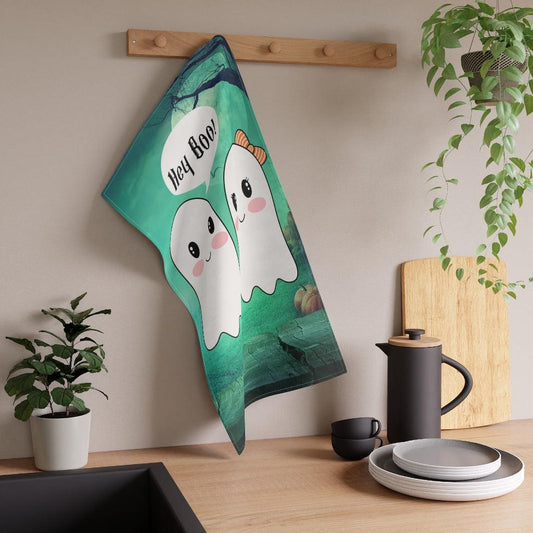 Cute Ghost Couple, Hey Boo, Kawaii Halloween Kitchen Tea Towel