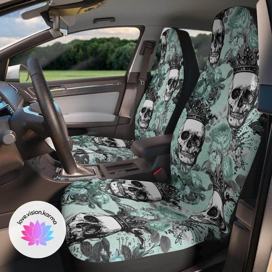 Skull with Crown Glam Goth Pastel Green Car Seat Covers