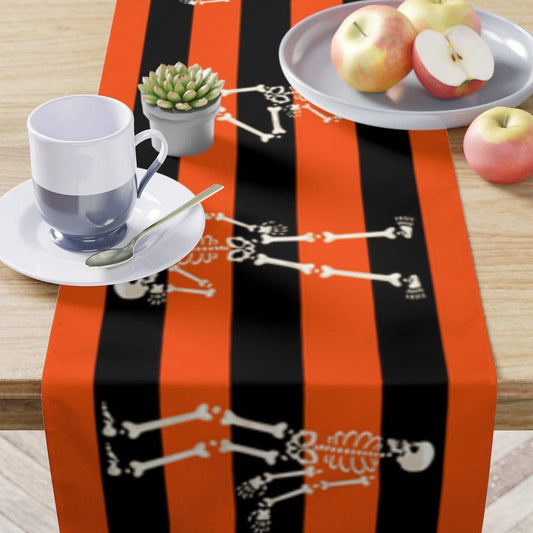 Dancing Skeletons Halloween Orange & Black Stripe Table Runner