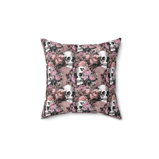 Skull with Roses Vintage Goth Glam Blush & Pink Valentine/Halloween Pillow