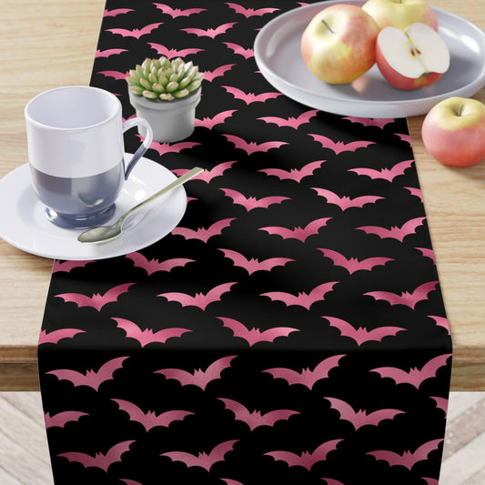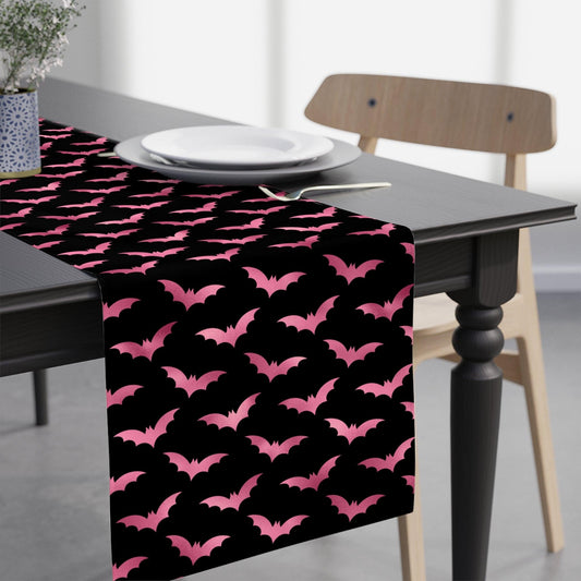 Pink Bats Spooky Halloween Glam Goth Black Table Runner