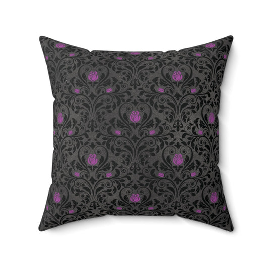 Victorian Goth Damask Purple & Black Halloween, Dark Academia Throw Pillow