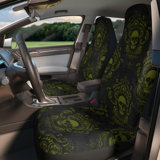Green Gothic Skulls with Ornate Frames Glam Goth Car Seat Covers