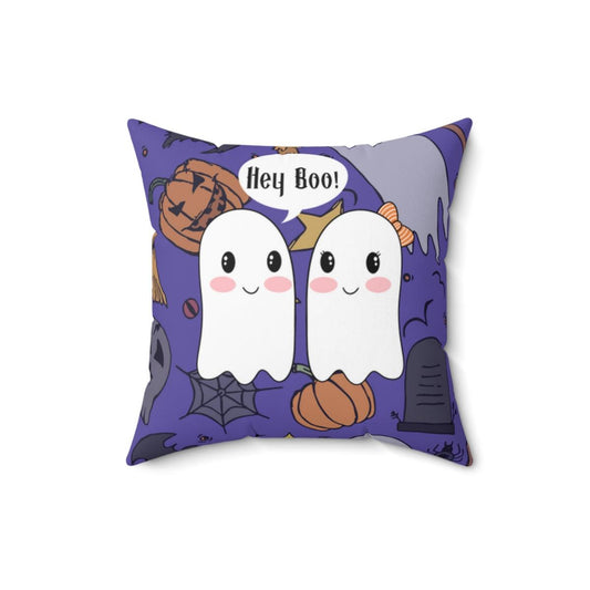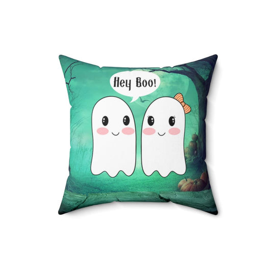 "Hey Boo!" Kawaii Ghost Couple Cute Halloween Pillow