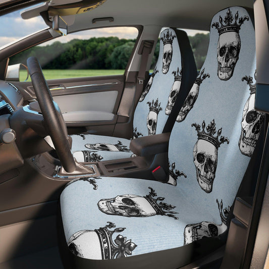 Crowned Skulls Blue Goth Glam Car Seat Covers