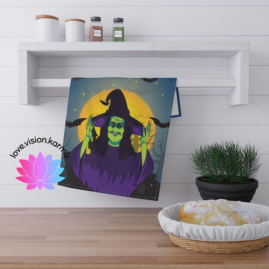 Retro Witch Funny Halloween MCM Kitchen Tea Towel