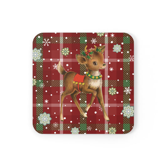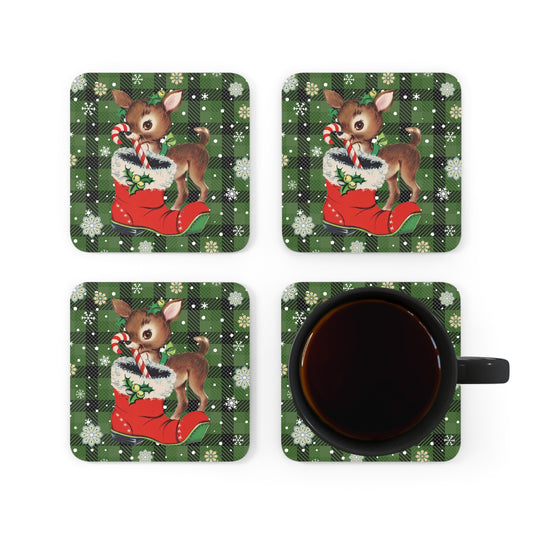 Retro 50's Christmas Vintage Reindeer MCM Red & Green Coaster Set