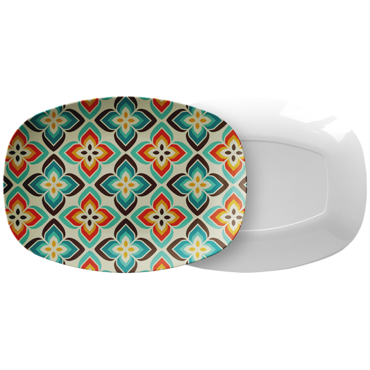 Retro 50's 60's Flowers Mid Century Mod Vintage Inspired Orange & Blue Serving Platter, Appetizer Tray