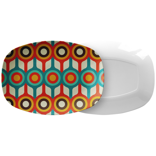 Retro 50s 60s Mid Century Mod Geometric Circles Multicolor Serving Tray, Party Platter