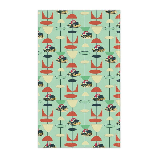 Retro 50s Atomic Burst MCM Teal Tea Towel