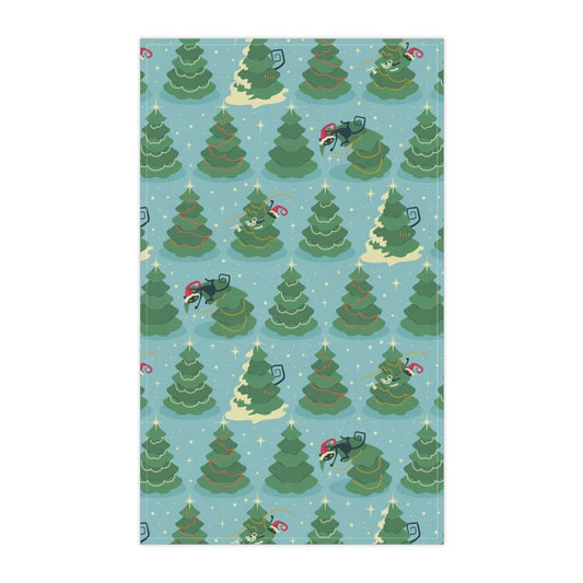Retro Atomic Cats and X-mas Trees MCM Blue Christmas Tea Towel