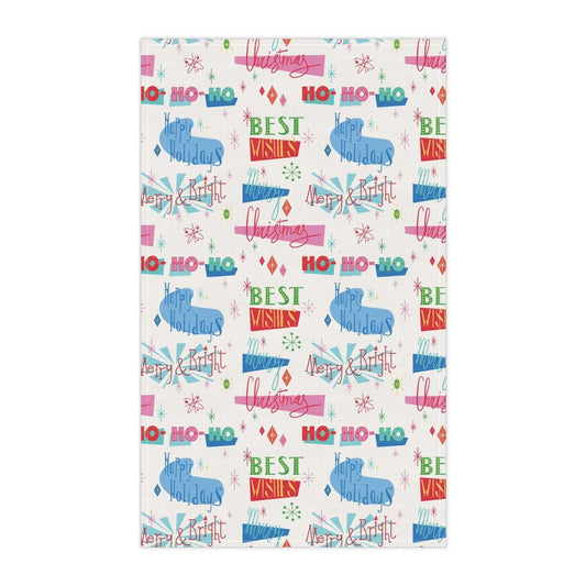 Festive Mid Century Mod Greetings, Multicolor Christmas Tea Towel