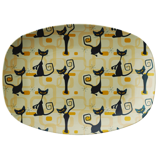 Retro 50's Atomic Cat Mid Century Mod Yellow Serving Tray, Party Platter