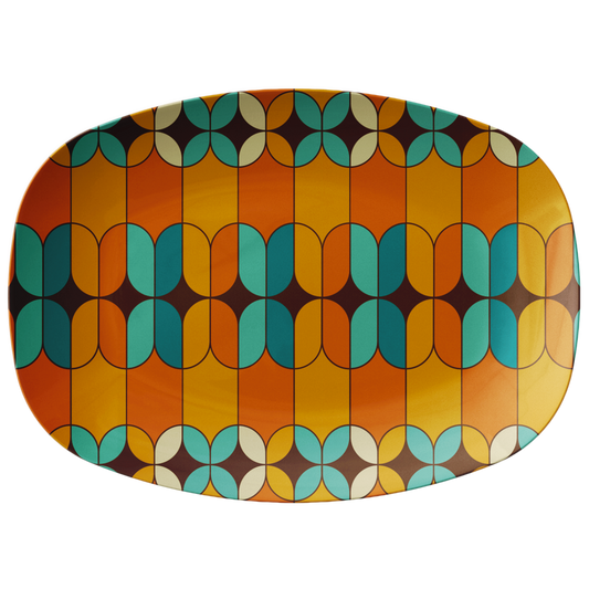 Retro 60s 70s Mid Century Mod Geometric Orange and Teal Serving Tray, Party Platter