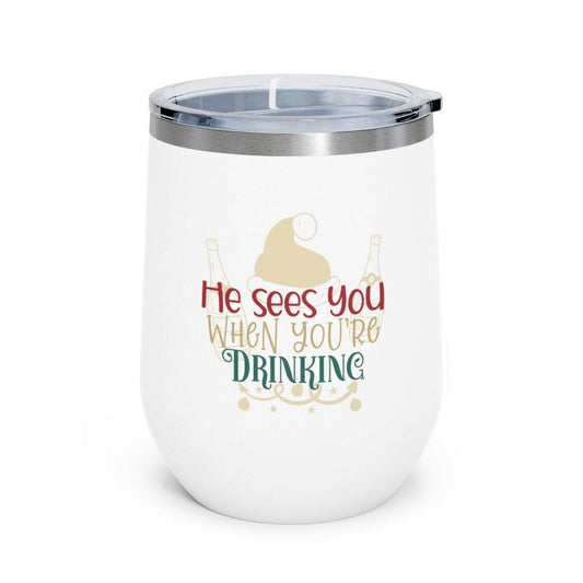 Funny Christmas Insulated Wine Tumbler 12oz "He Sees You When..."