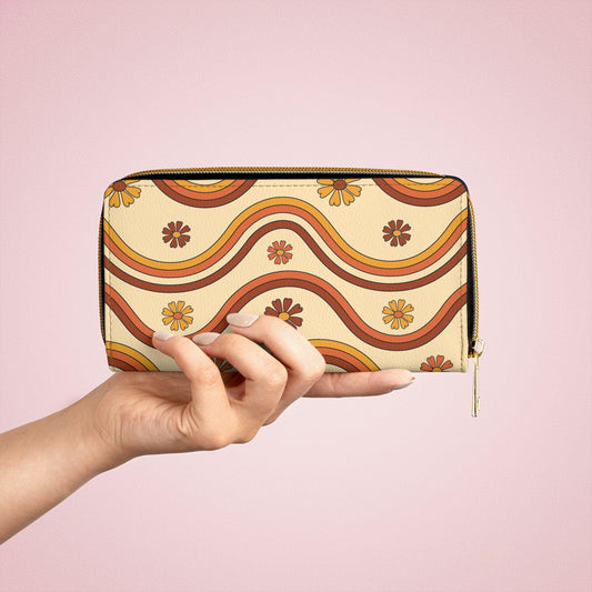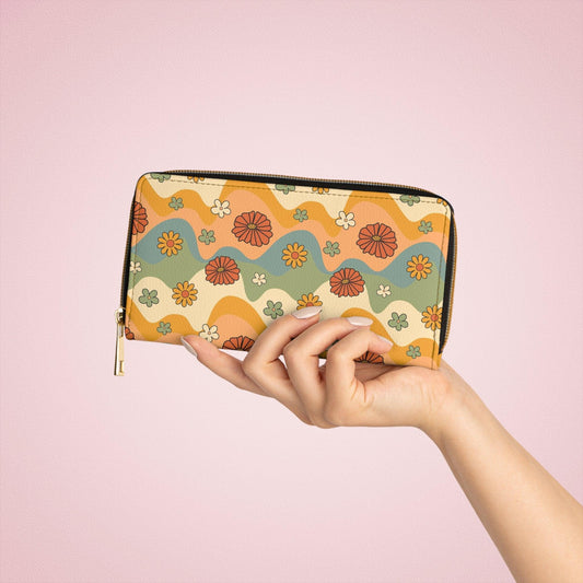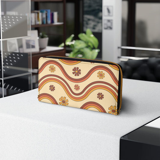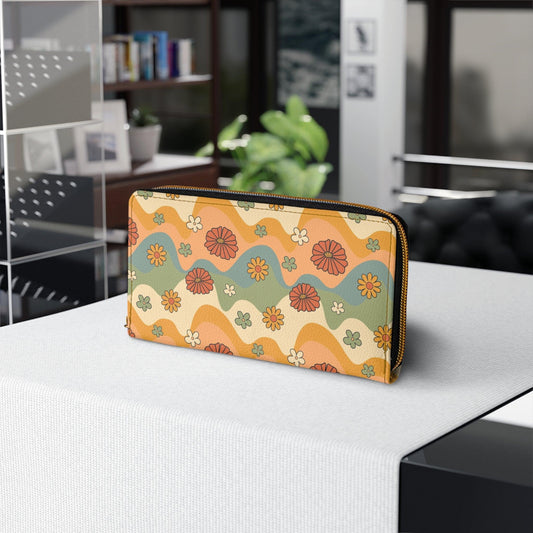 Boho Flowers and Waves Cottagecore Retro Multicolor Zipper Wallet