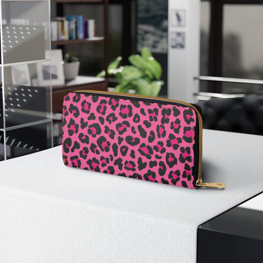 Pink Leopard Cheetah Animal Print Zipper Wallet