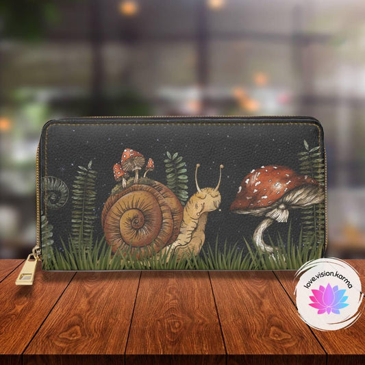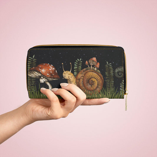 Boho Snail and Mushroom Enchanted Forest Cottagecore Zipper Wallet