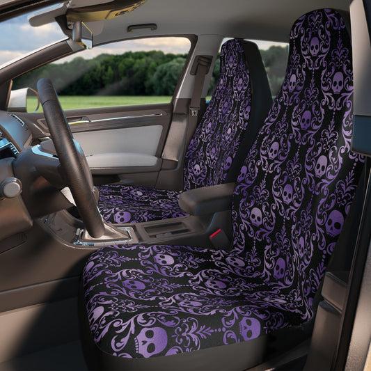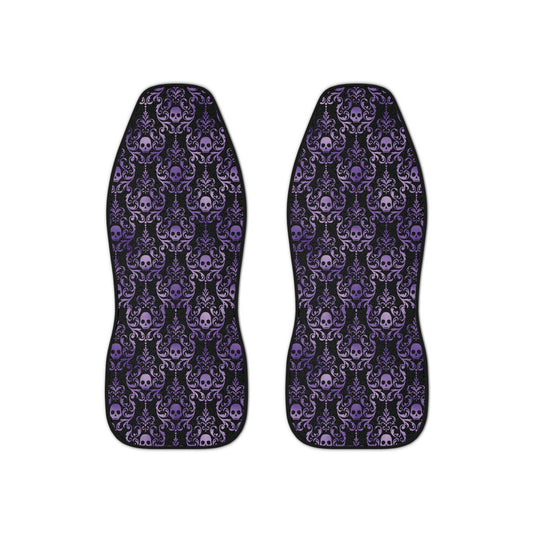 Dark Academia Damask Skull, Victorian Goth Inspired Purple & Black Glam Goth Car Seat Covers