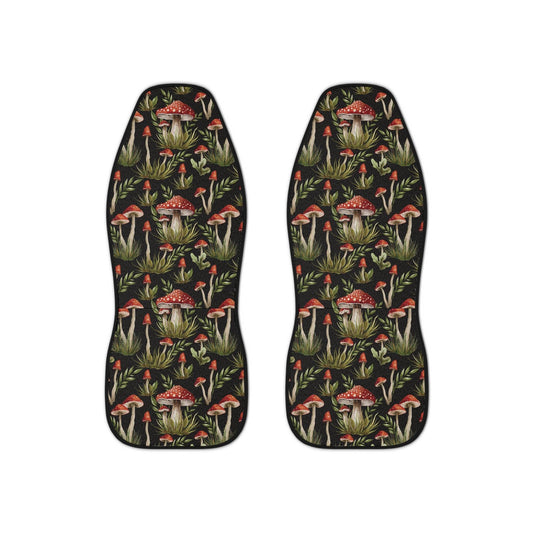 Amanita Muscaria Mushroom, Dark Cottagecore Watercolor Black, Red & Green Car Seat Covers