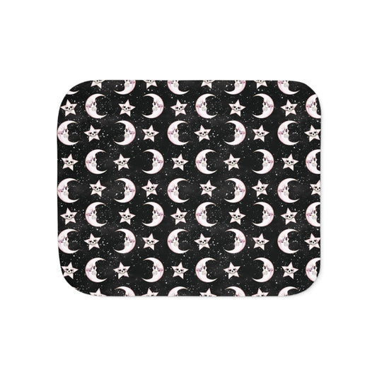 Goth Christmas Celestial Moon & Stars Whimsical Kawaii Creepmas Black Sherpa Blanket