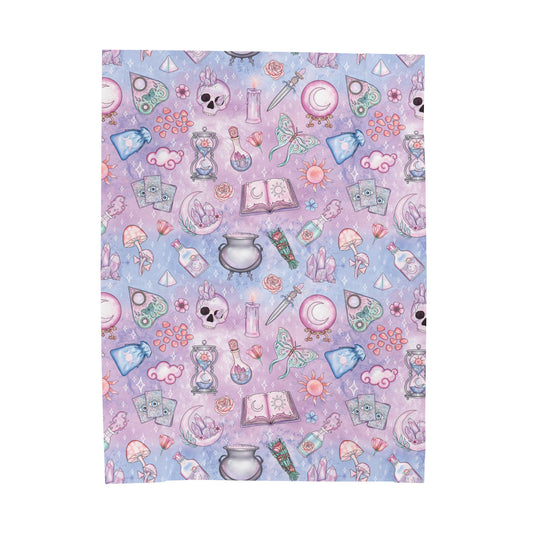 Kawaii Pastel Goth Witchy Whimsigoth Pink & Blue Velveteen Lightweight Blanket