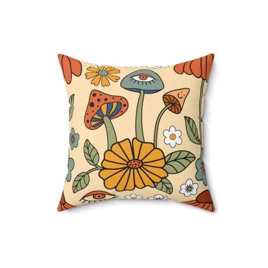 Boho Trippy Mushroom, Hippie Cottagecore MCM Pillow