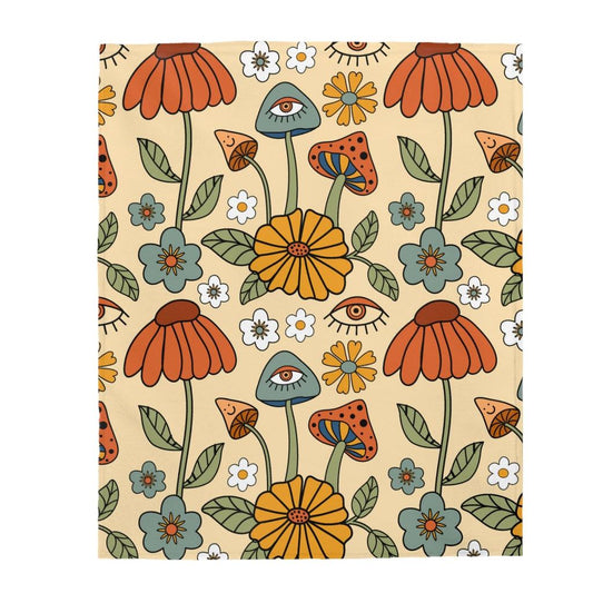 Trippy Mushroom Boho Hippie Flower Velveteen Lightweight Blanket